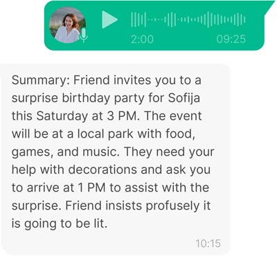 Send audio notes to GPT! Transcribe, summarize, or simply use it to communicate with GPT.