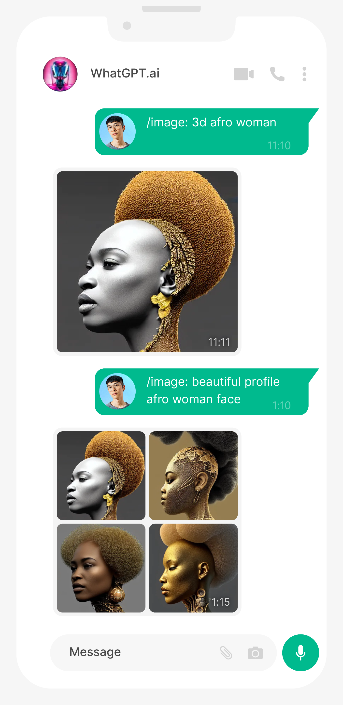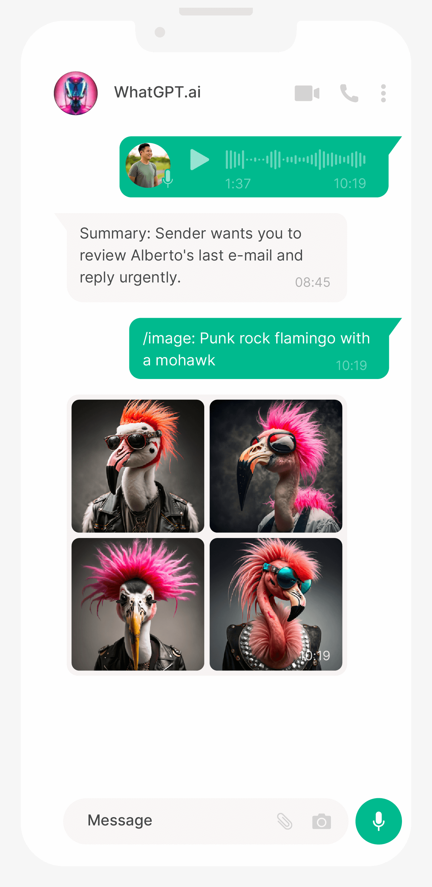 Type a scene description and receive an image generated by AI, right on WhatsApp!